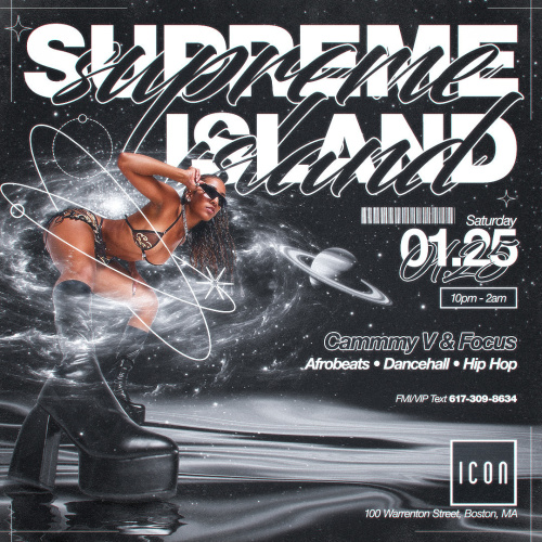 [descr] => <p><strong>Join us for Supreme Island at ICON!</strong></p><p> </p><p><strong>Music by Cammy V & Focus</strong></p><p> </p><p><strong>Dress to impress! Please no athletic wear, no workboots, no shorts, no sandals, no sneakers, no t-shirts, and no baggy clothing. Exceptions are made for designer brands only on a case by case basis.</strong></p><p> </p><p> </p><p><strong>Management reserves all rights.</strong></p><p> </p><p><strong>21+</strong></p>